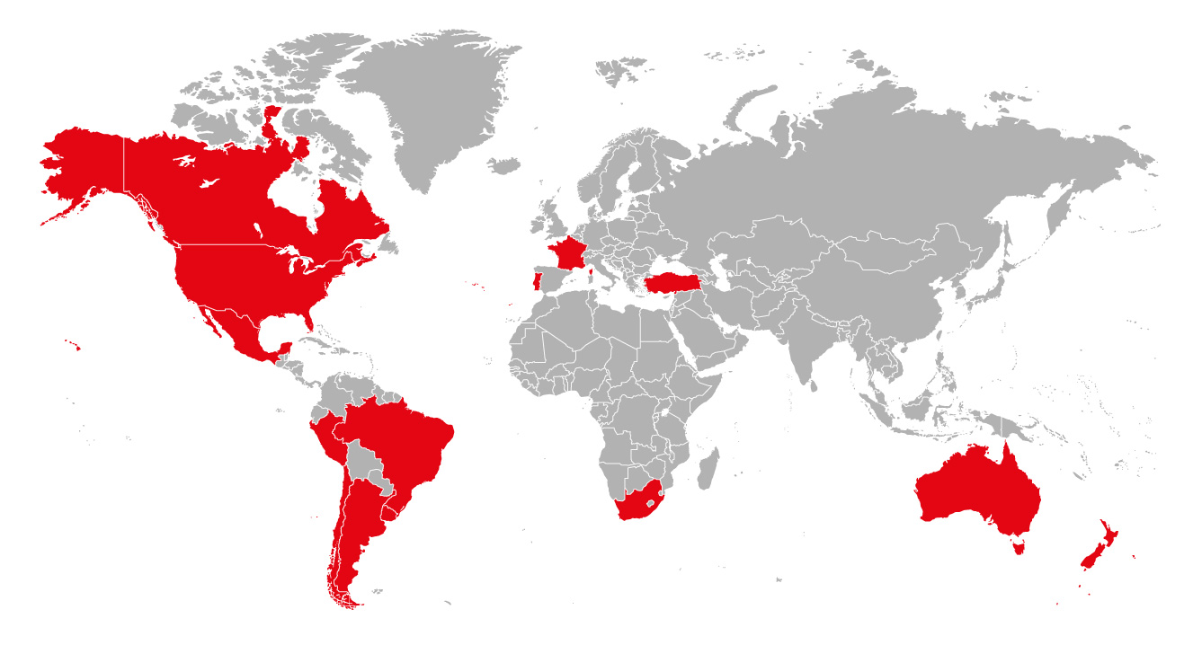 I membri del Consorzio sono aziende leader nel settore della produzione e commercializzazione di frutta e sono distribuiti in 16 paesei Quali: Portogallo, Francia, Turchia, Sud Africa, Stati uniti d’America, Messico, Perù, Cile, Argentina, Brasile, Uruguai, Australia e Nuova Zelanda